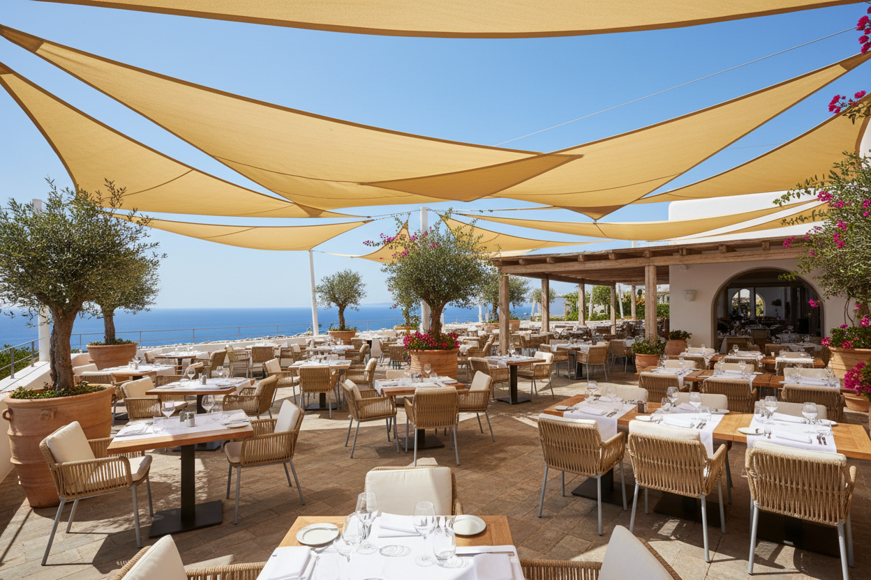 Les toiles d'ombrage ajoutent une touche contemporaine et élégante à tout espace extérieur, grâce à leurs formes variées et leurs couleurs personnalisables.
